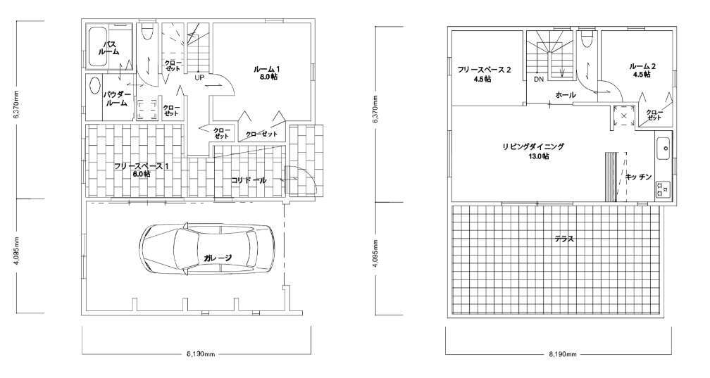 ガレージをもう少し広くしたり、1階と2階の間取りを入れ替えることも可能です!!