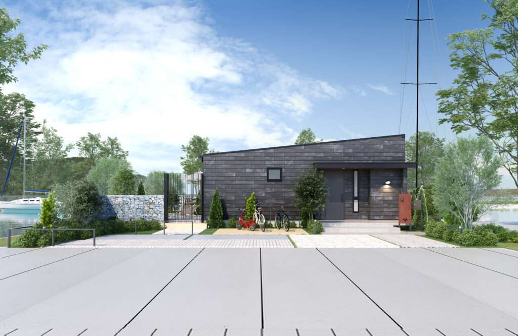 1LDK+和室の平屋プランである1208は、ミニマルなデザインを基調とした造りです。