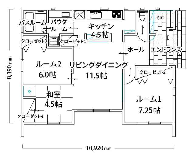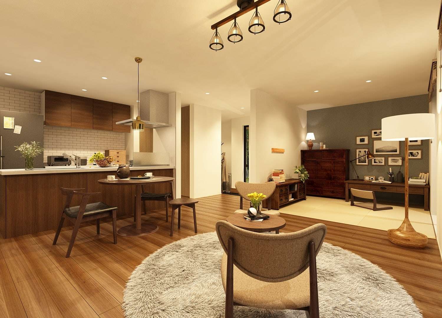 4LDKプランである1211は広々18帖のLDKを中心にリビングで必ず家族が顔を合わせるような部屋構成となっていて、自然とフラットな会話が生まれます。