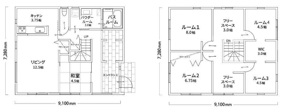 810Aは玄関にシューズクロークがあり、2階にもウォークインクローゼットとクローゼットがあります。