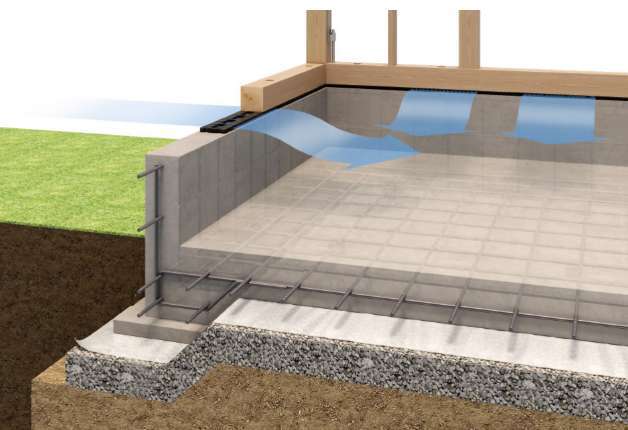 一面に敷き詰められた防湿シートと面構造のコンクリートにより地中から発生する湿気の建物内部への侵入を抑え、建物の耐久性向上と良好な床下環境を維持します。